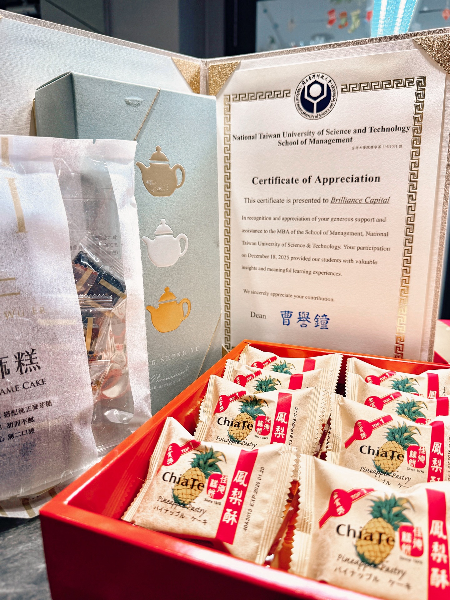 A heartfelt thank you for the thoughtful gifts from Taiwan and the certificate of appreciation — we truly appreciate the gesture and continued trust 🙏